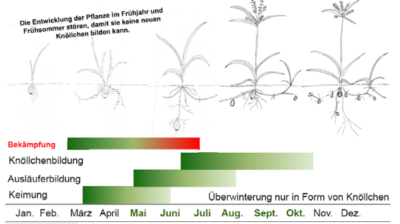 Abbildung 3: Lebenszyklus des Erdmandelgrases, Agroscope 2011