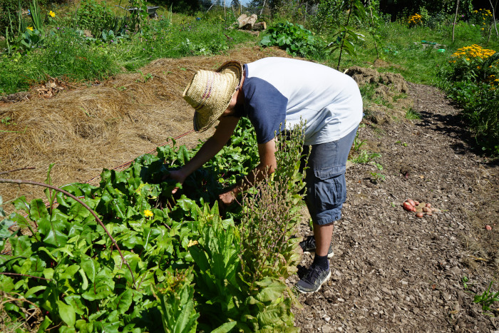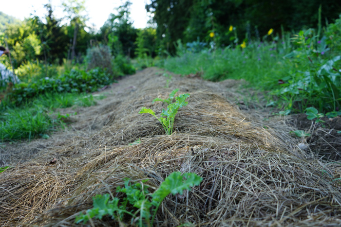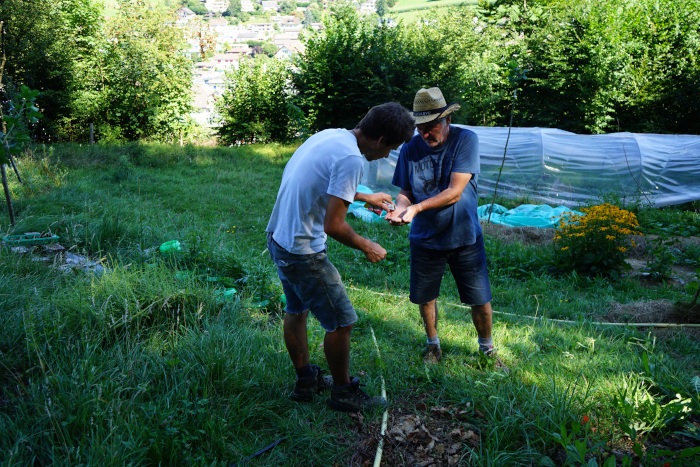 Wie viele Male habe ich mich selbst mit dem Anbau gestresst? Immer wieder säen, pikieren (ausdünnen der Sämlinge), pflanzen, vor Schnecken schützen, hochbinden, auf Krankheiten kontrollieren, vor Dürren schützen und so weiter und so weiter und so weiter….fort. Ich gärtnere so intensiv, weil meine Lebensmittel in unserer Kulturlandschaft immer wieder von Gülle oder der so sehr gerühmten Landschaftspflege zum Opfer fallen. Mich macht es traurig zu sehen, dass man kaum noch Himbeeren und Johannisbeeren wild finden kann, da die Waldränder bis an die hohen Bäume heran zurück gemäht werden. Noch scheint der ewige Dualismus zwischen Wald und landwirtschaftlicher Fläche, zwischen «gepflegtem» Kulturland und Wald (der Gottseidank immer weniger aufgeräumt wird) die Denkweise vieler Menschen zu dominieren. Landschaftspflege kann sehr sinnvoll sein, aber wird meiner Meinung nach in der Schweiz übertrieben (wenn euch die Gründe interessieren, dann lasst es mich bitte in den Kommentaren wissen). Ich schweife ab. Weil genau diese, nicht in den Dualismus passende und rare Randzonen so artenreich sind, orientiere ich mich bei der Gartengestaltung mehr an jenen Biotopen und ihrer grossen Fülle an mehrjährigen Pflanzen. Denn mehrjährige Gewächse müssen nicht immer wieder gepflanzt werden und können uns ebenfalls ernähren (zusammen mit den Einjährigen). Ich will mir nicht mehr die Arbeit aufhalsen, die sich ein Teil meiner, sich selbsversorgenden Ahnen bereitet hat. Pflanzlich zu leben hat da einen riesigen Vorteil. Man muss nicht um 5 Uhr aufstehen, nur um seine Haselnüsse zu melken. Tiere als Nutztiere zu halten ist viel Arbeit und hinsichtlich der Alternative einer vielfältigen, lokalen und pflanzlichen Ernährung auch fragwürdig. Die Natur gibt uns immer dann genau das richtige, wenn wir es brauchen. Ob es nun «Unkräuter» sind, die nur in deinem Garten zu keimen scheinen oder einfach nur die verschiedenen Ernten durchs Jahr hindurch; auch unser Körper hat je nach Jahreszeit verschiedene Bedürfnisse. Auch die Art, wie ich anbaue, hat sich in den vielen Jahren immer wieder geändert und an die lokalen Gegebenheiten angepasst. Der japanische Bauer Masanobu Fokuoka fragte sich immer wieder: «Was muss ich nicht tun?». Er hat mich mit seinen Werken sehr inspiriert. So versuche auch ich, unnötige Arbeiten zu vermeiden. Ohne umgraben zu arbeiten, ist nur eine der vielen Techniken, die wir bei uns im Garten anwenden.